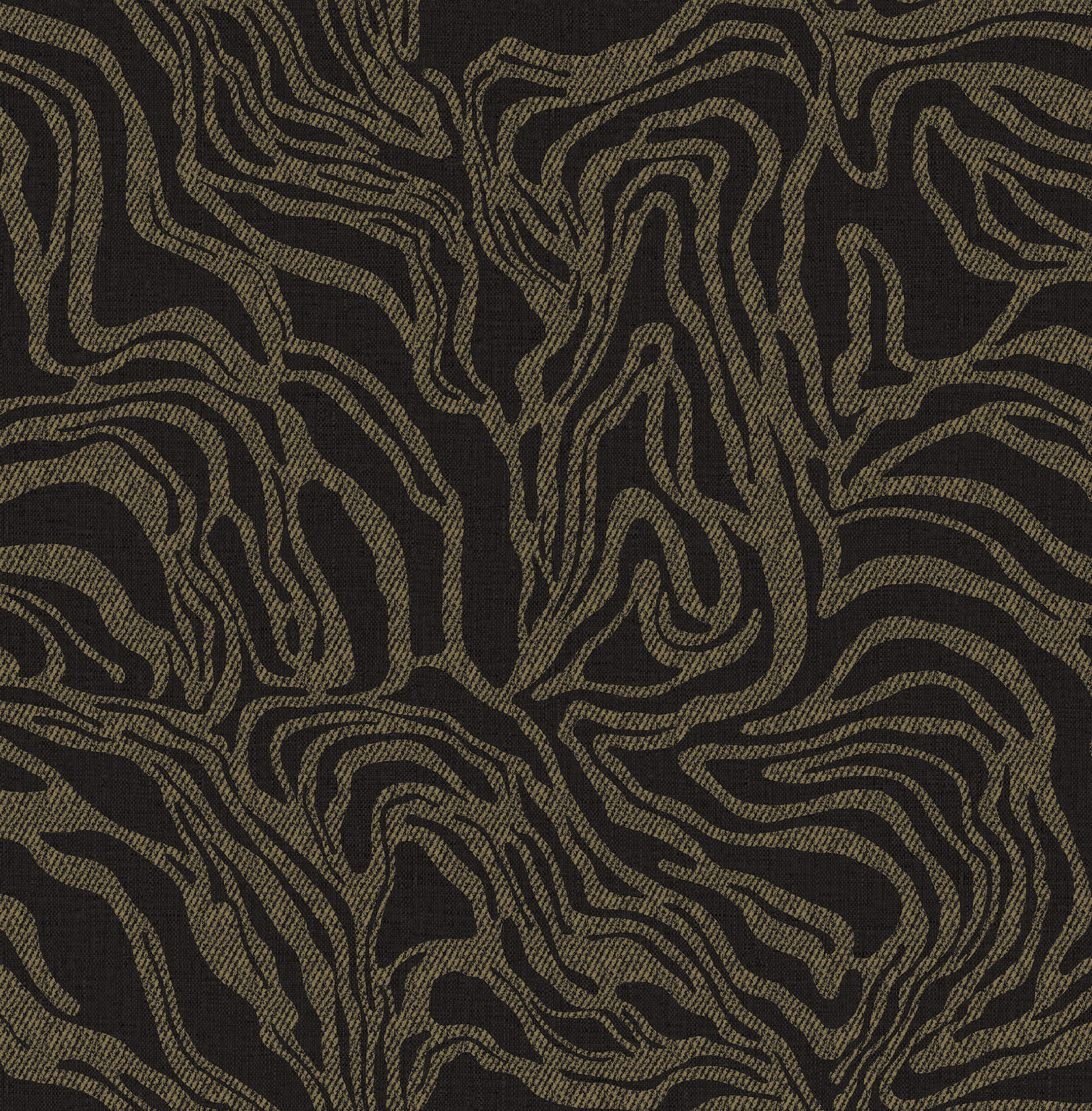 Textural detailing across Massar’s free-flowing lines and backdrop adds subtle dimension to this organic design. Seen here with metallic gold swirls across black. Massar is an unpasted, non-woven wallpaper measuring 20.5 inches wide by 33 feet long, covering approximately 56.4 square feet per roll.