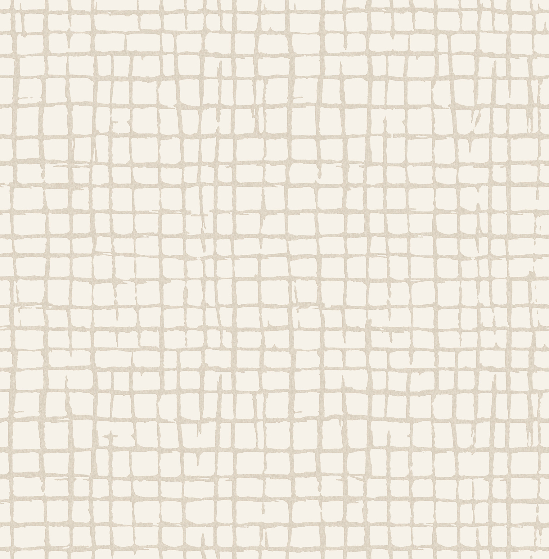 The hand-drawn netting of Albin offers modern dimension elevated by tactile detailing. Featured here with rich beige linework against cream. Albin is an unpasted, non woven wallpaper measuring 20.5 inches wide by 33 feet long, covering approximately 56.4 square feet per roll.