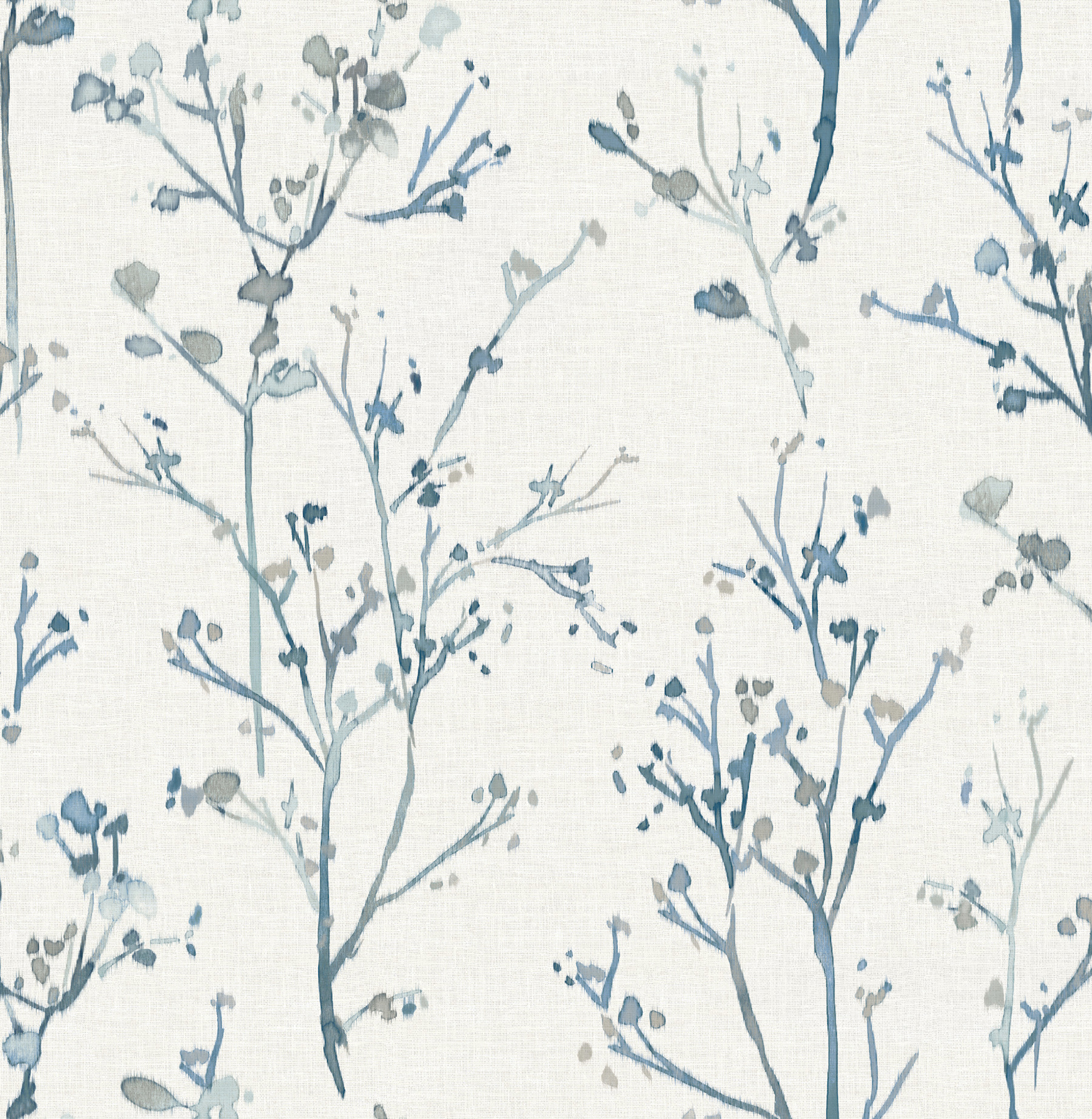 Silvering’s delicate, budding branches inked in soft watercolors are laid against a backdrop enriched with linen detailing. Seen here in shades of blue and grey against cream. Silverling is an unpasted, non-woven wallpaper measuring 20.5 inches wide by 33 feet long, covering approximately 56.4 square feet per roll.