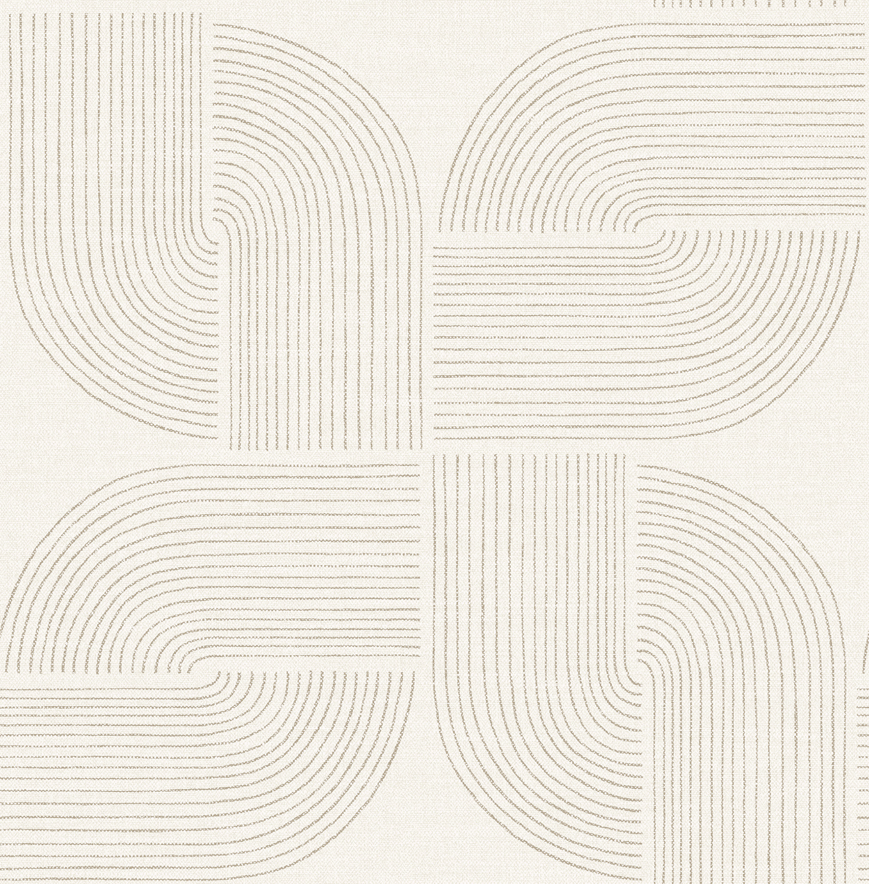 The culmination of linear arches and the stars formed at their center lends Savoye retro flair and lived-in elegance. Featured here with brown linework against pale grey. Savoye is an unpasted, non-woven wallpaper measuring 20.5 inches wide by 33 feet long, covering approximately 56.4 square feet per roll.