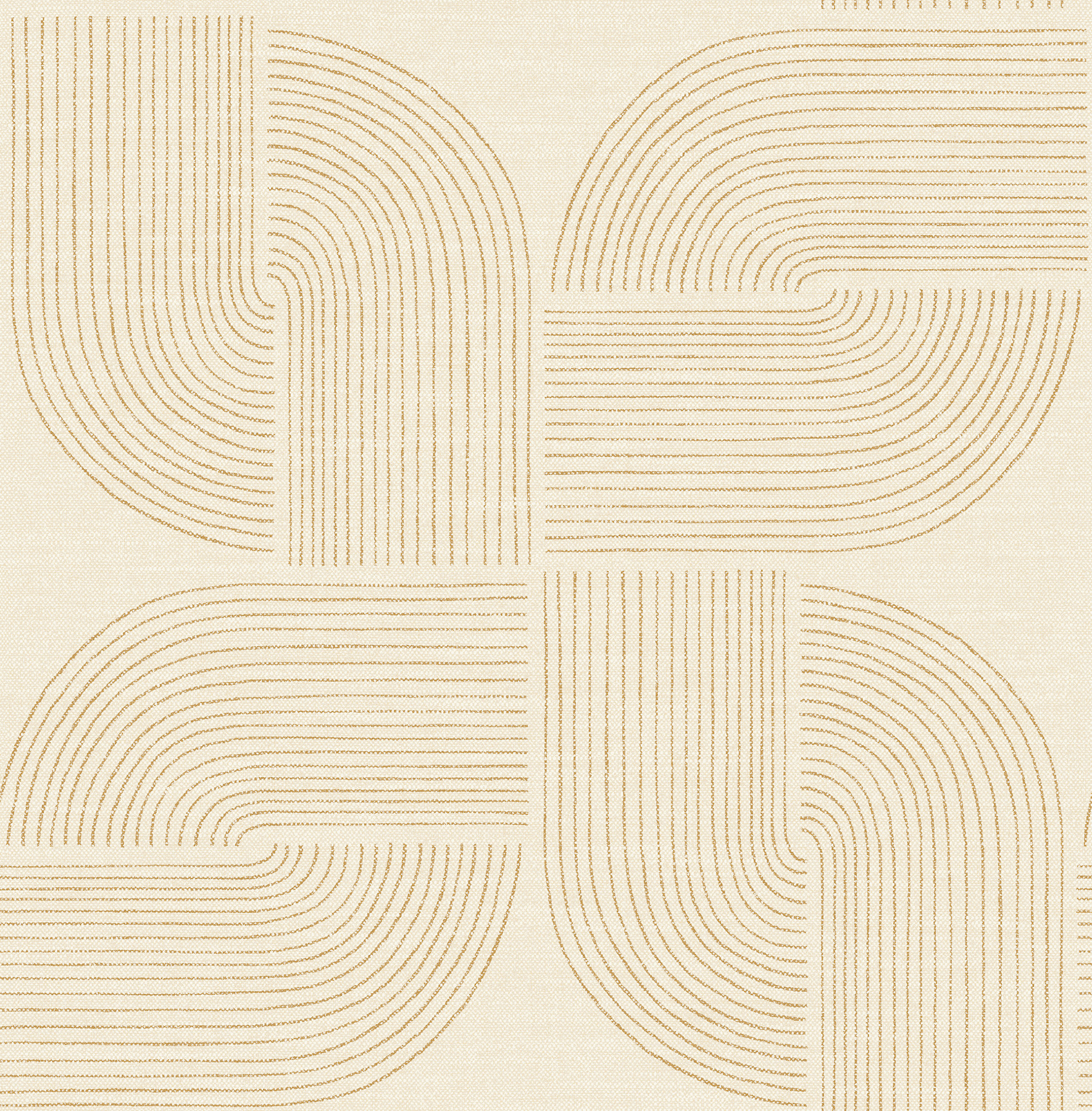 The culmination of linear arches and the stars formed at their center lends Savoye retro flair and lived-in elegance. Featured here with ochre linework against warm beige. Savoye is an unpasted, non-woven wallpaper measuring 20.5 inches wide by 33 feet long, covering approximately 56.4 square feet per roll.