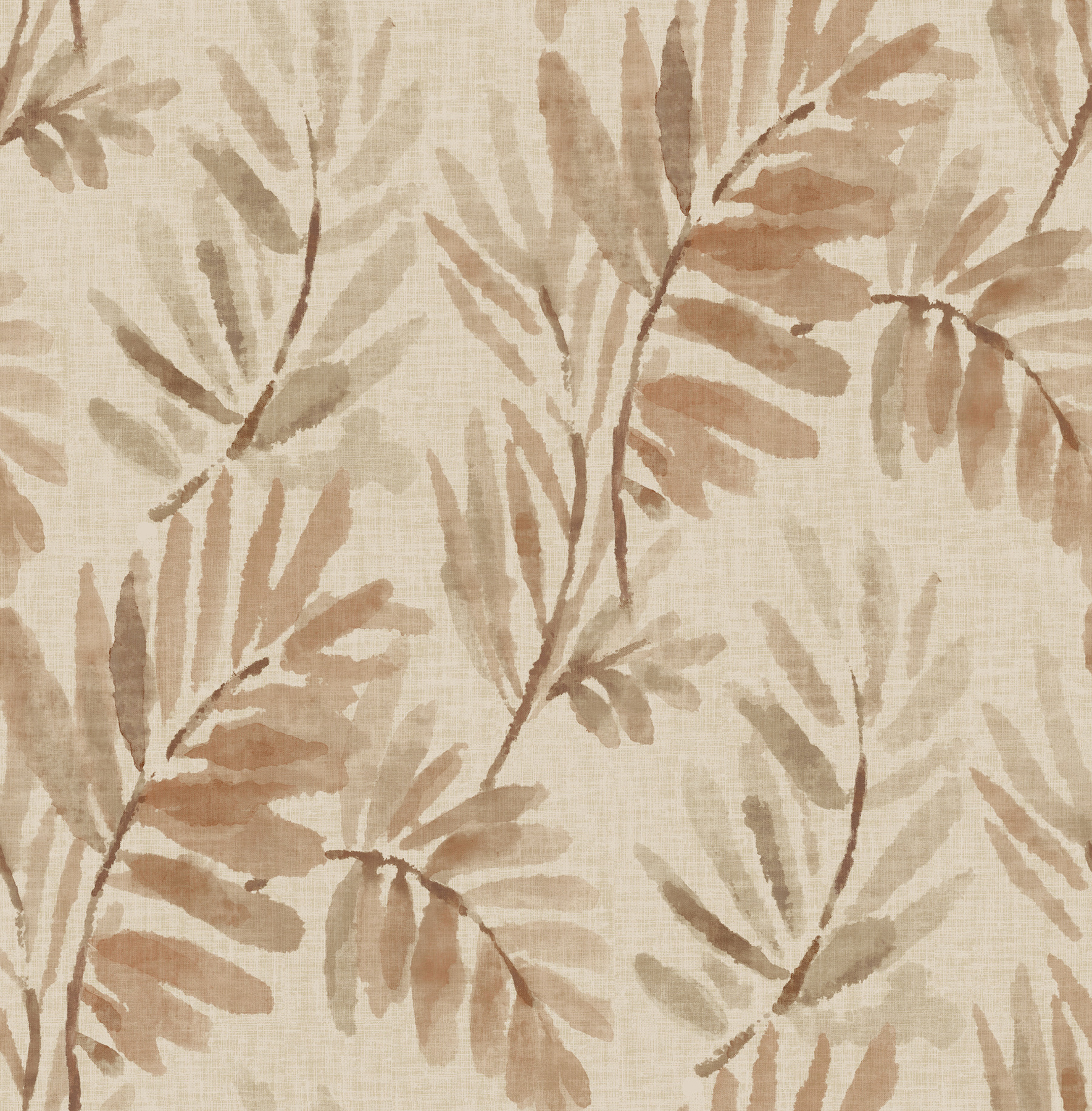 Airy ferns inked in soft watercolors along a linen-detailed backdrop infuse Serenade with the gentle serenity of the woods. Featured here in shades of pink, rose, and taupe against beige. Serenade is an unpasted, non-woven wallpaper measuring 20.5 inches wide by 33 feet long, covering approximately 56.4 square feet per roll.