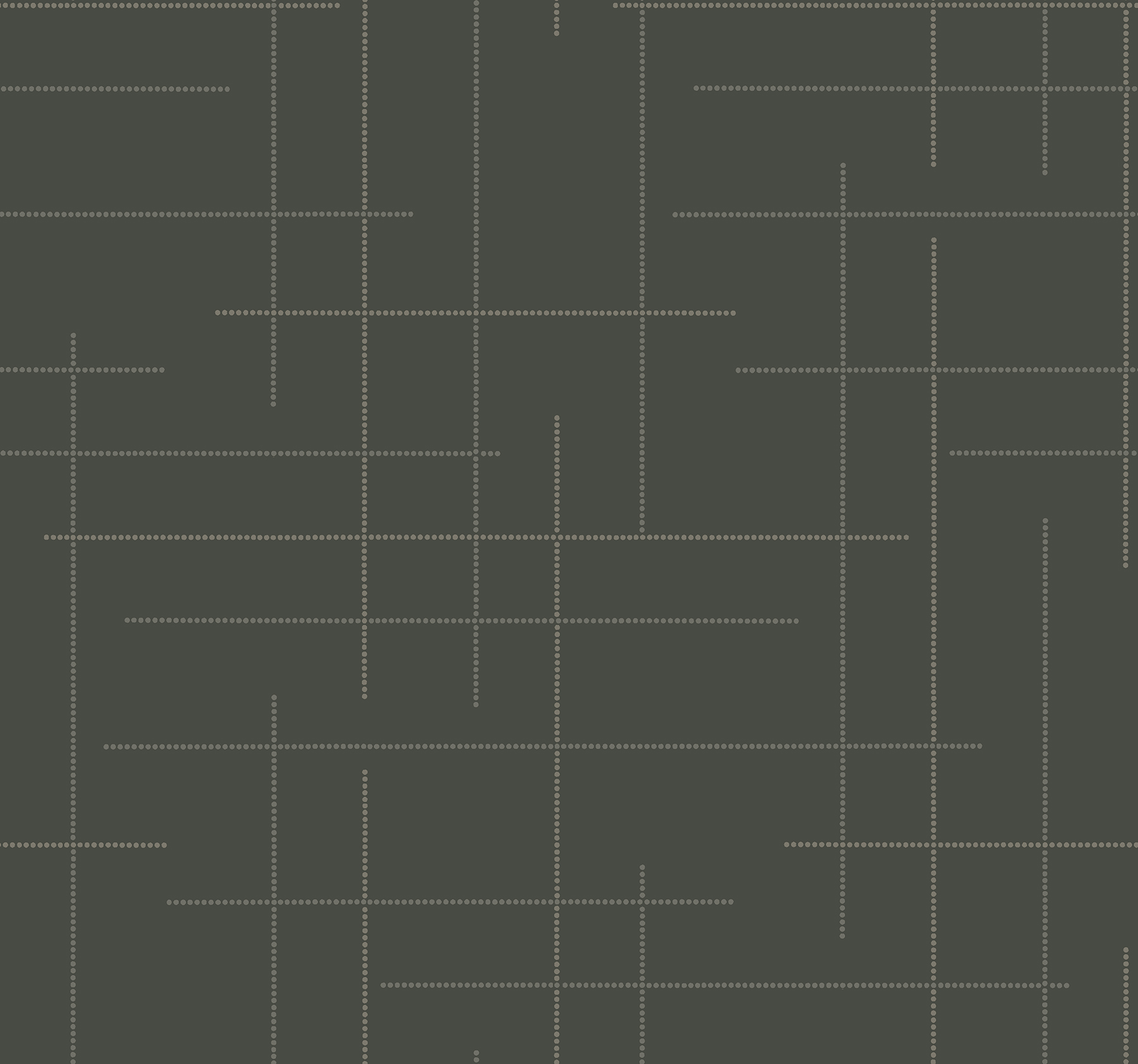 Dotted lines seemingly end and intersect at random, creating an organic, movement-rich grid. Seen here with cream and beige dots against a moss green ground. Wylie is an unpasted, non woven wallpaper measuring 20.5 inches wide by 33 feet long, covering approximately 56.4 per roll.
