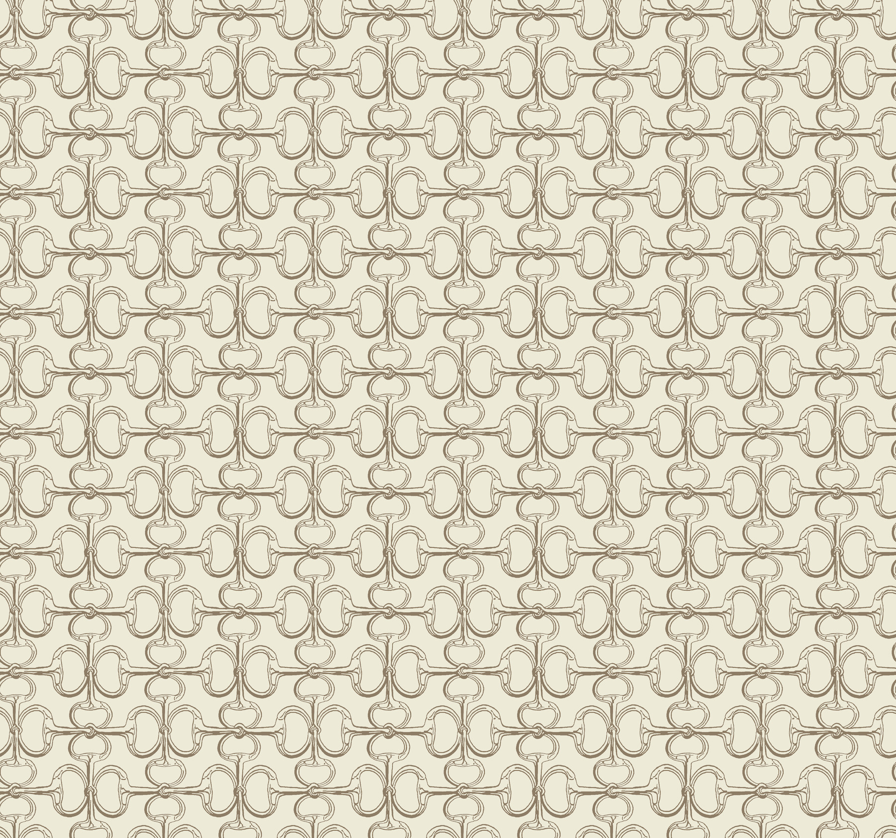 Pattern Polo is a sophisticated nod to equestrian pastimes with its compelling, key-like motif composed of bits. Seen here outlined in warm brown against a beige backdrop. Polo is an unpasted, non woven wallpaper measuring 27 inches wide by 27 feet long, covering approximately 60.8 square feet per roll.