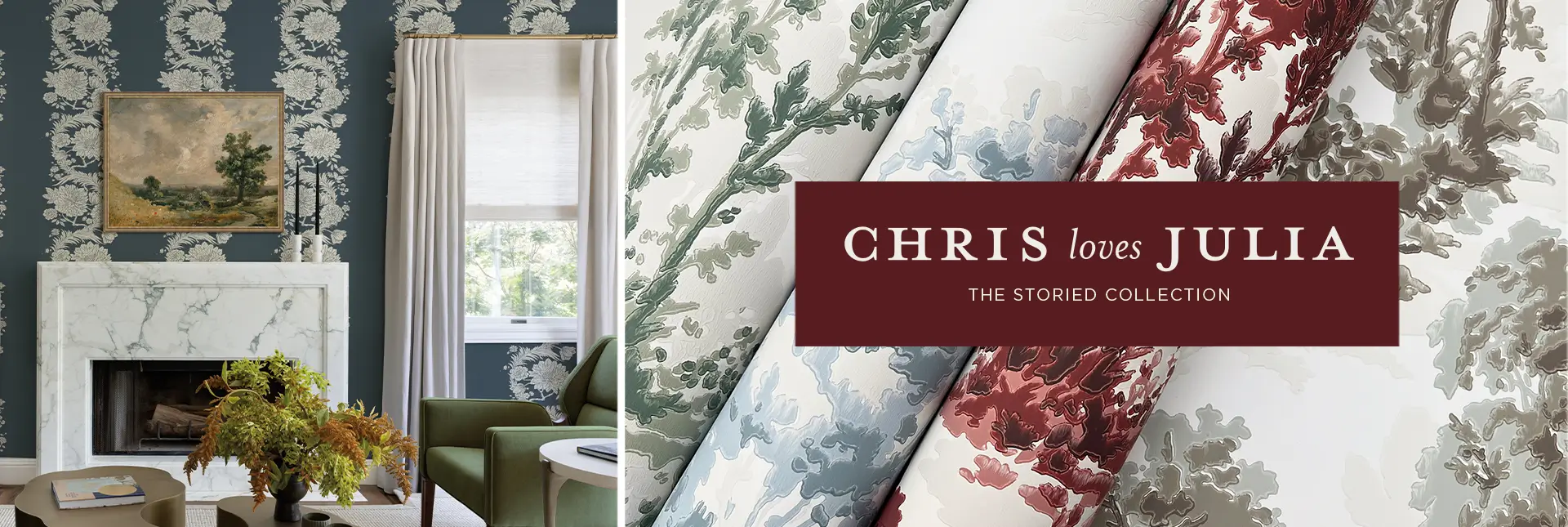 Redefine heirloom style for the modern day with Chris Loves Julia: The Storied Collection. This traditional wallpaper partnership with A-Street Prints evokes Chris Loves Julia’s signature modern and moody take on traditional aesthetics with an assortment of timeless botanicals, dramatic damasks, and textural accents in rich, dynamic color palettes.