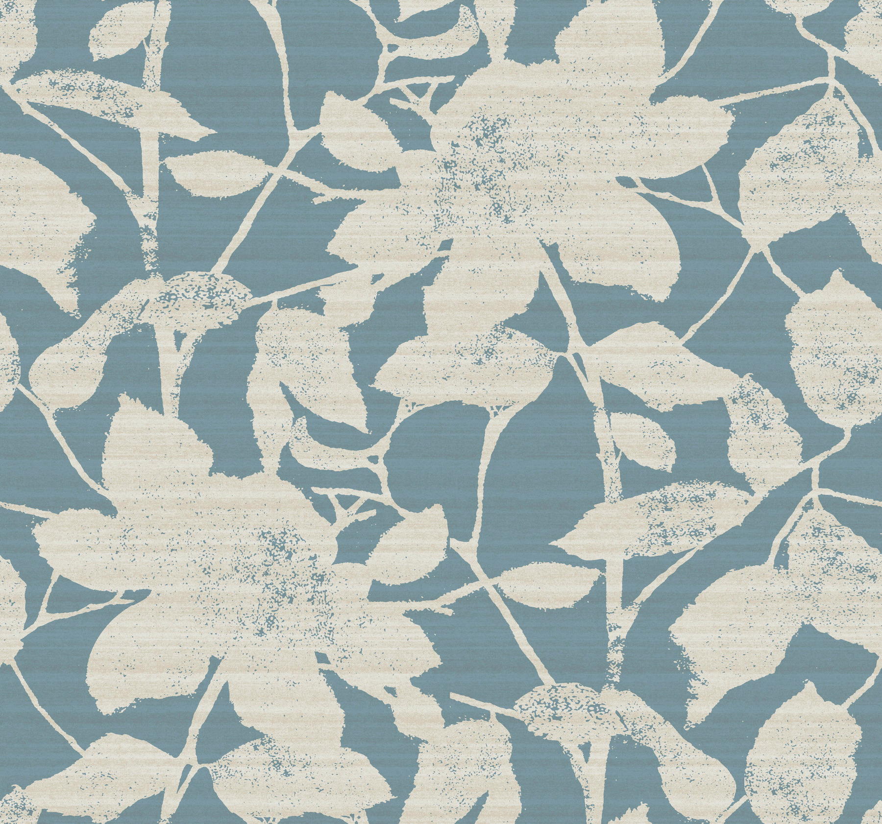 Solange's enticing silhouettes of woodland florals enjoy extra richness from their dappled overlay along a softly striated backdrop. Seen here inked in beige against bright teal. Solange is an unpasted, non woven wallpaper measuring 27 inches wide by 27 feet long, covering approximately 60.8 square feet per roll.