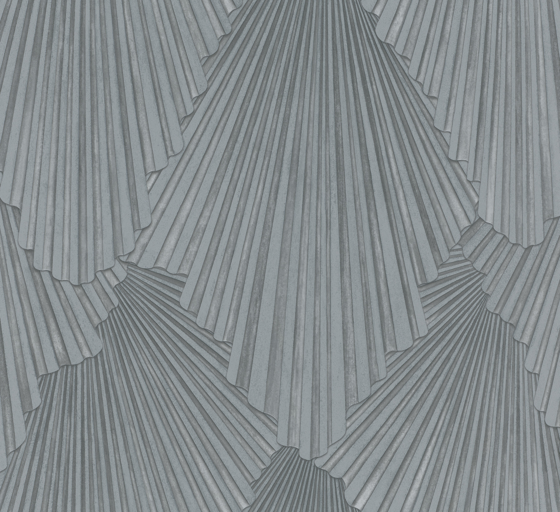 Scalloped, fanning forms overlap to create a chic damask pattern in Art Deco-inspired design Lumiere. Featured here in two-tone grey. Lumiere is an unpasted, vinyl wallpaper measuring 27.6 inches wide by 33 feet long, covering approximately About 75.9 square feet square feet per roll.
