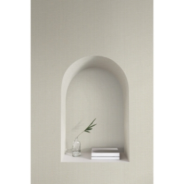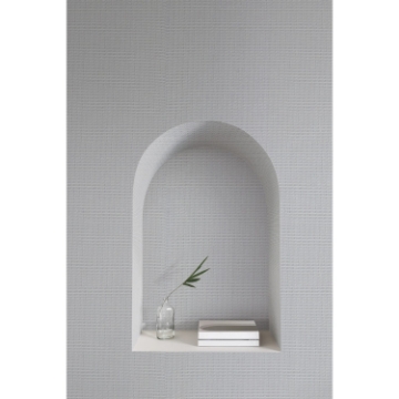 Monotone color is subtly enhanced with a rough, pebble-like texture in pattern Eastwind. Seen here in cool white with soft pearlescence. Eastwind is an unpasted, vinyl wallpaper measuring 27.6 inches wide by 33 feet long, covering approximately About 75.9 square feet square feet per roll.
