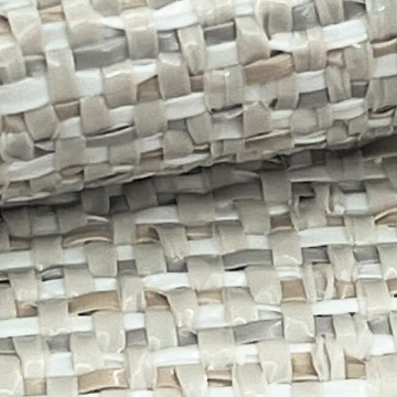 A haphazard netting of woven threads adds abstract and modern dimension to pattern Crossover. Seen here with pale blue against off-white. Crossover is an unpasted, non woven vinyl wallpaper measuring 27 inches wide by 27 feet long, covering approximately About 60.8 square feet square feet per roll.
