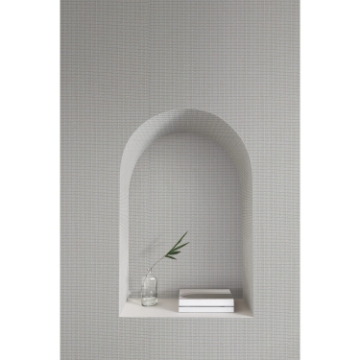 Vanishing Point's dense striations and textured detailing offer an abundance of sophisticated comfort. Featured here in shades of pale grey, beige, taupe, and white. Vanishing Point is an unpasted, non woven wallpaper measuring 27 inches wide by 27 feet long, covering approximately 60.8 square feet per roll.