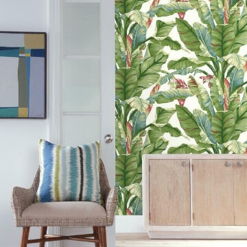 Sizable leaves seem to sway in the trade winds revealing the flowers on this Banana Leaf wallpaper. The tall plant speaks of the tropics and of sun kissed days on the lanai. This Banana Leaf Peel & Stick Wallpaper measures approximately 27 inches wide by 20 feet long, covering About 45 square feet per roll. This product is a superior luxury non-woven peel and stick wallpaper, which removes easily in full strips without damage to surfaces.York Wallcoverings always recommends visiting your local York Authorized Dealer, Showroom or Designer. These local partners have a vast product knowledge and can provide invaluable assistance with color and design selection, technical information, installation tips, referrals to local wallpaper installers, tools needed, etc. Use our store locator to find seller in your area. Standard samples are 8 in x 10 in but may vary depending upon pattern.