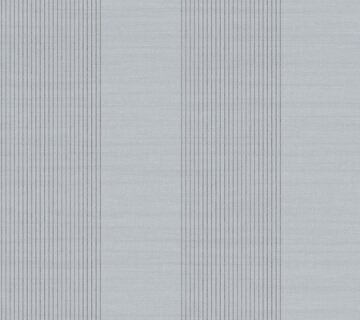 Dozens of pinstripes form wide columns evenly spaced along a backdrop imbued with fine linen detailing in pattern Archer Stripe. Featured here with charcoal pinstripes along a light blue background. Archer Stripe is an unpasted, non woven wallpaper measuring 27 inches wide by 27 feet long, covering approximately 60.8 square feet per roll.