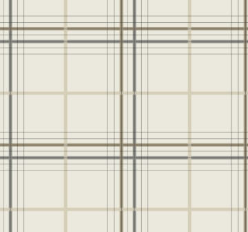 The variance in the width of the gridlines gives a traditional pattern contemporary flair in Lakeside Plaid. The linework is inked in light and dark brown, grey, and black along a beige background. Lakeside Plaid is an unpasted, non woven wallpaper measuring 27 inches wide by 27 feet long, covering approximately 60.8 square feet per roll.