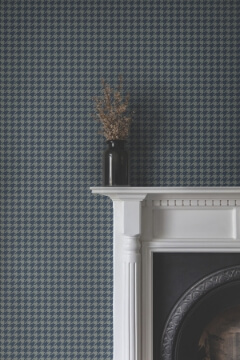 High-fashion houndstooth has been translated into a wall-worthy highlight in pattern Watson. Featured here in alternating shades of blue. Watson is an unpasted, non woven wallpaper measuring 27 inches wide by 27 feet long, covering approximately 60.8 square feet per roll.