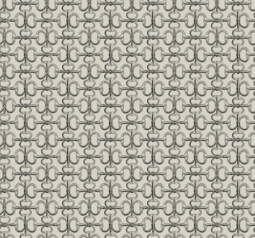 Pattern Polo is a sophisticated nod to equestrian pastimes with its compelling, key-like motif composed of bits. Seen here outlined in black against a taupe backdrop. Polo is an unpasted, non woven wallpaper measuring 27 inches wide by 27 feet long, covering approximately 60.8 square feet per roll.